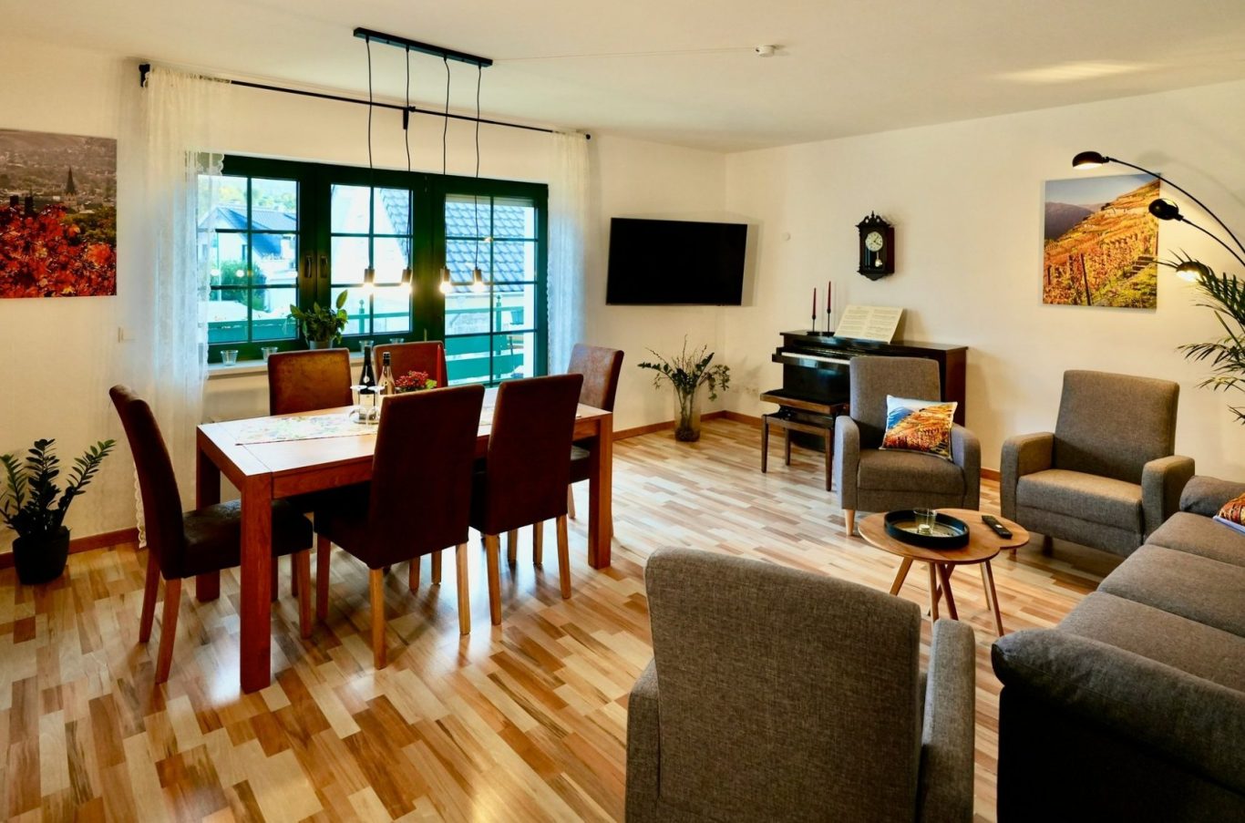 Die Ferienwohnung 'Im Tal der roten Traube' bietet Ihnen eine komfortable und elegante Unterkunft inmitten der atemberaubenden Natur des Ahrtals. Entspannen Sie in unseren großzügigen Schlafzimmern und genießen Sie alle Annehmlichkeiten, die unseren Gästen zur Verfügung stehen.